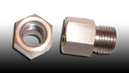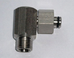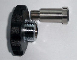 complete made from stainless steel of course the male 3/8 thread is a bit longer (9mm) than standard (6-7mm) for better fitting into plastic threads for example still fits nearly all 1 stages, shorter 3/8 male is possible on request slimline, only 15mm wide !