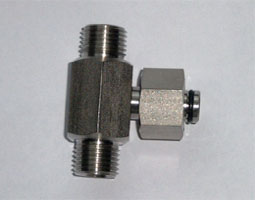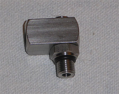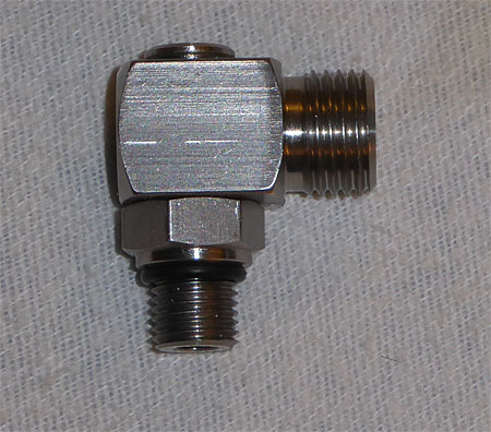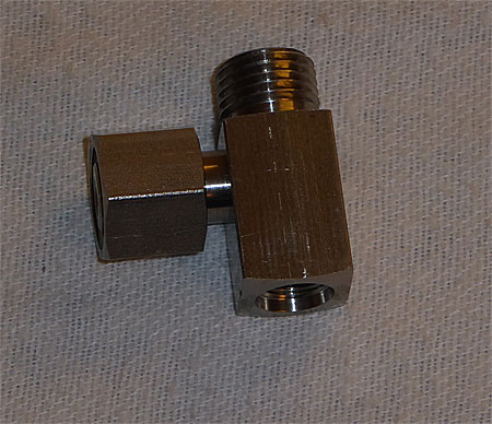 90° angle male 9/16 UNF -- 2x female 3/8 UNF