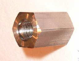 complete made from stainless steel of course the male 3/8 thread is a bit longer (9mm) than standard (6-7mm) for better fitting into plastic threads for example still fits nearly all 1 stages slimline, only 15mm wide !