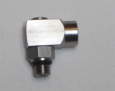 Adapter (22 mm wide) male 3/8 UNF to female 3/8 UNF 90° turnable