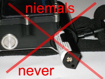 Niemals mit der Batterie in