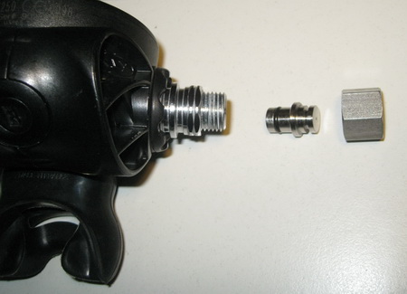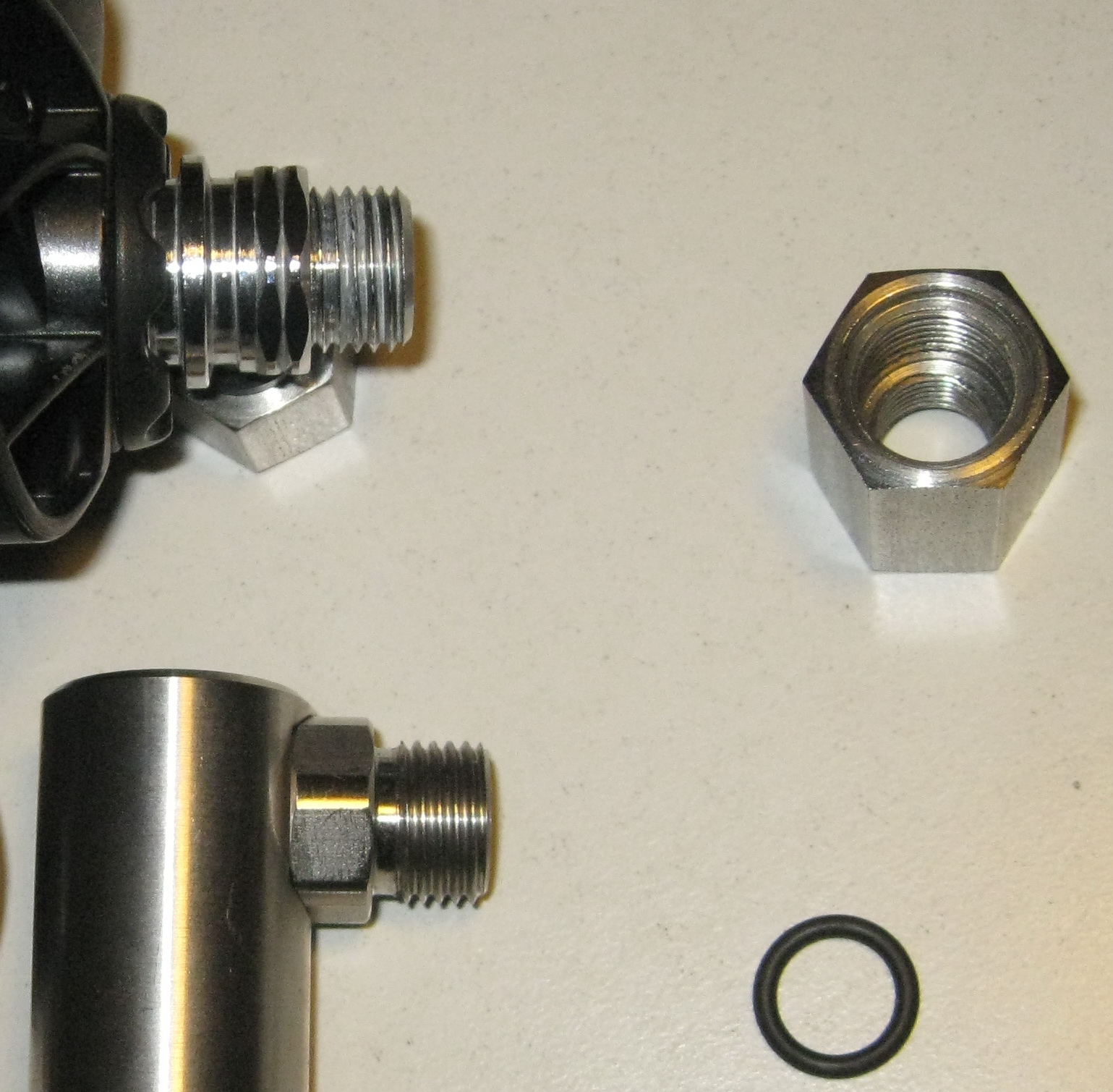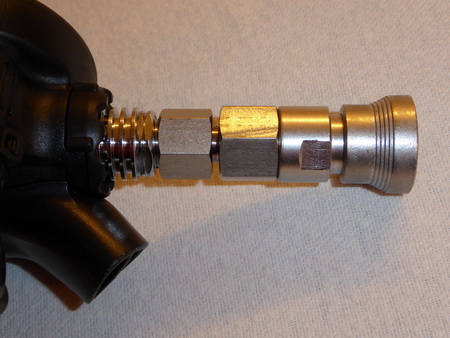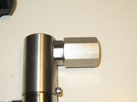 On the regulator style UNF 9/16 a standard female 9/16 fitting may NOT seal safe! You see the o‐ring is NOT proper in the shoulder of the female adapter, also below is still threadedpart, this o-ring can never seal safe and correct!! |
